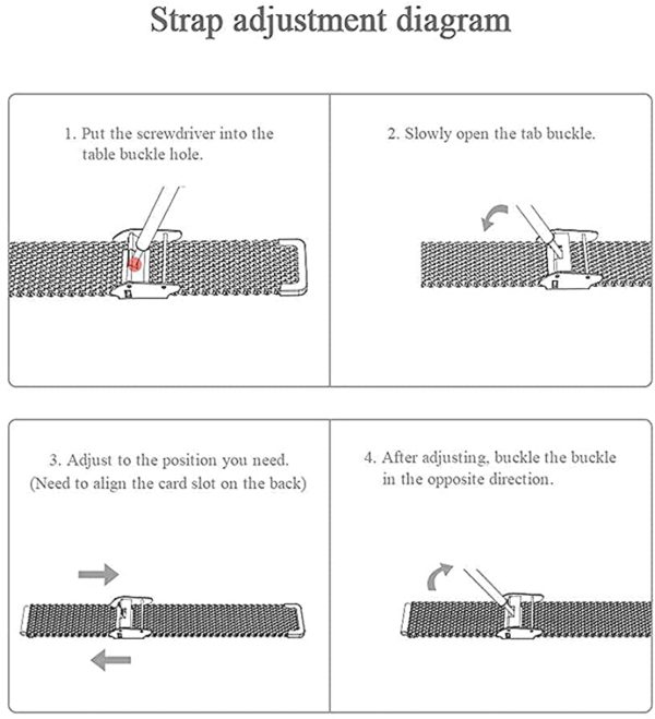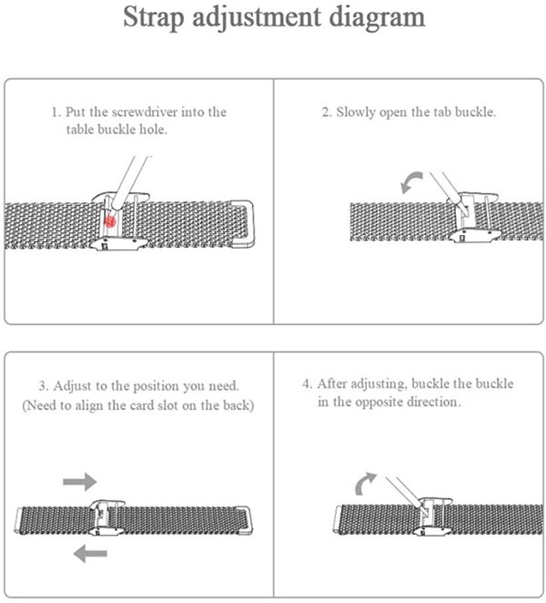 A When the strap is too longer for you, the adjustment tool is used to open or close the buckle, so as to fit your size.