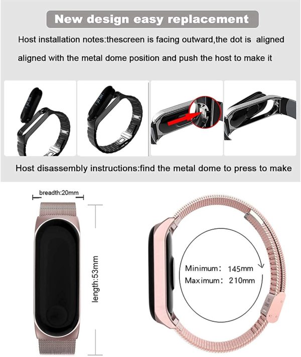 3Chome Metal Strap Compatible with Xiaomi Mi Band 6 / Mi Band 5/ Mi Band 4 / Mi Band 3, Smart Watch Wristbands Replacement Accessories