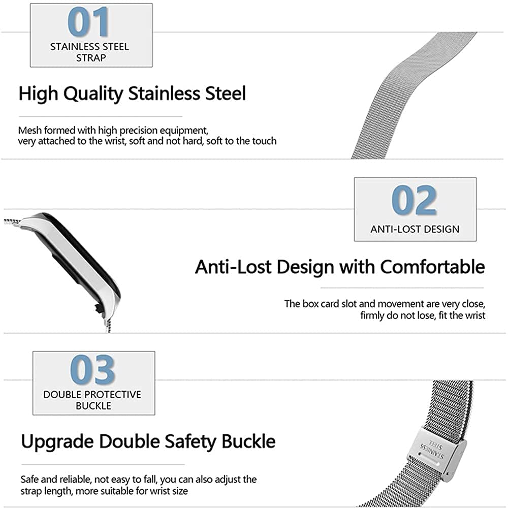3Chome Metal Strap Compatible with Xiaomi Mi Band 6 / Mi Band 5/ Mi Band 4 / Mi Band 3, Smart Watch Wristbands Replacement Accessories