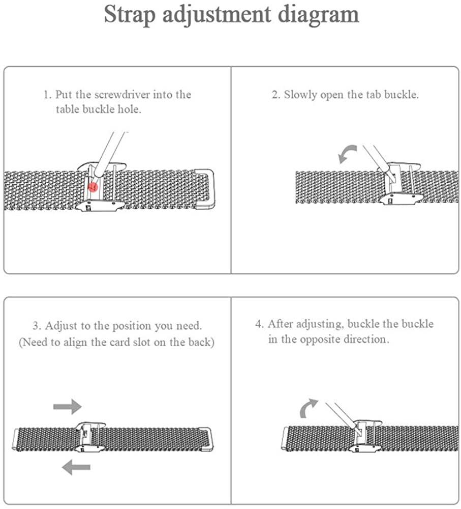 A When the strap is too longer for you, the adjustment tool is used to open or close the buckle, so as to fit your size.