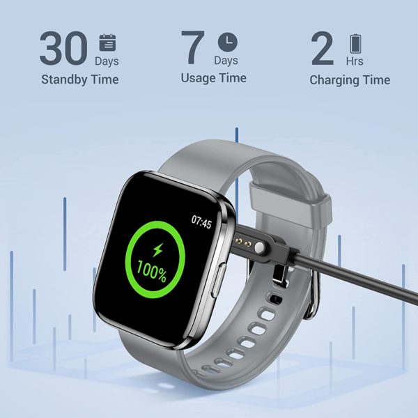 A Dear customer,Our smart watch charges with a magnetic charger (includes in package).If you need more information, please don’t hesitate to contact us.Regards,Customer Service Team