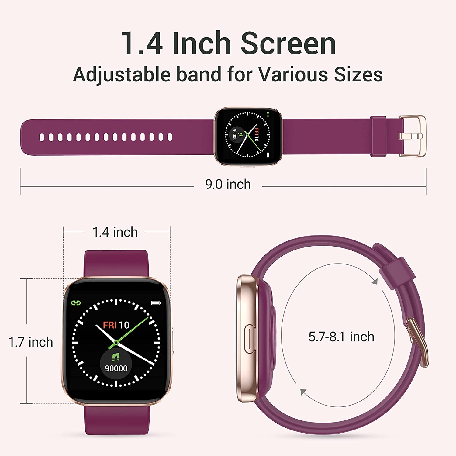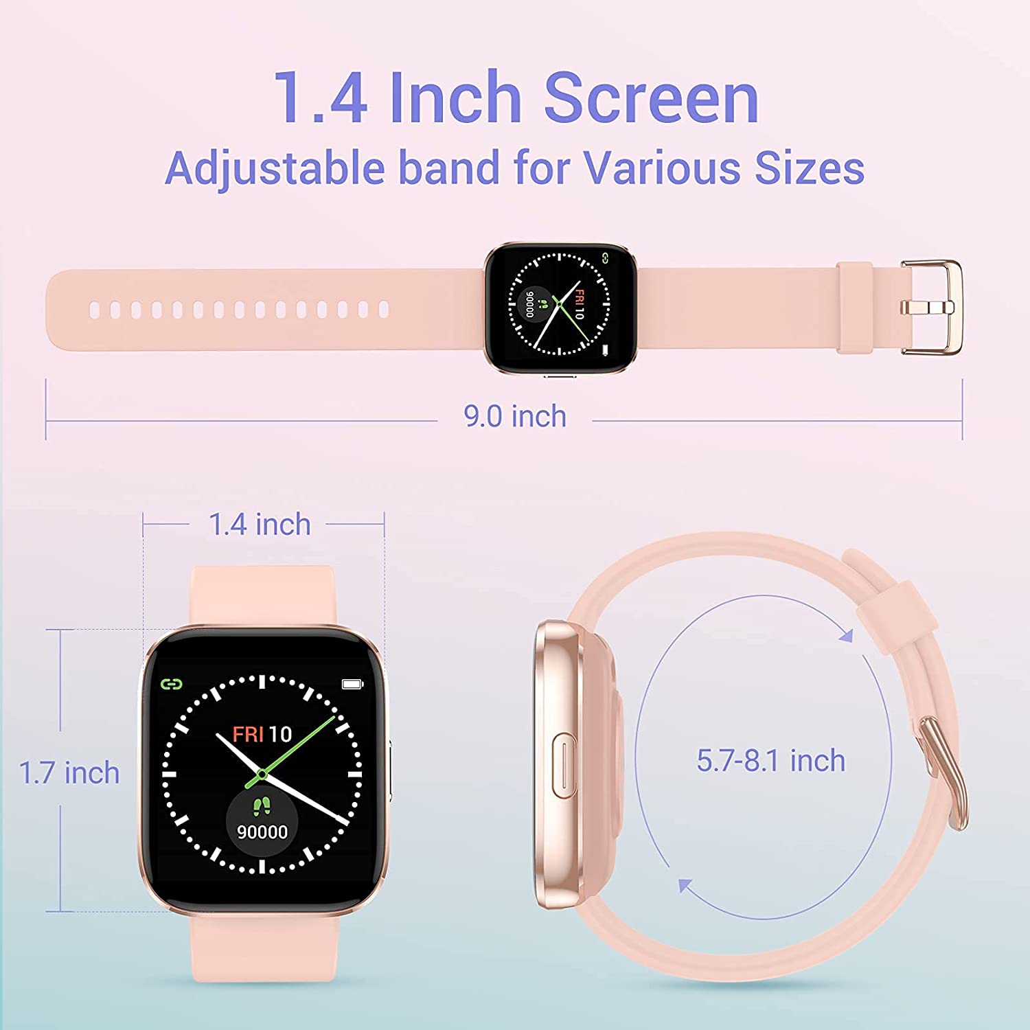 Fitniv Smart Watch, 1.4 Inch Touch Screen Smartwatch with Heart Rate Monitor, IP68 Waterproof Fitness Tracker Compatible with iPhone and Android Phones for Women Men