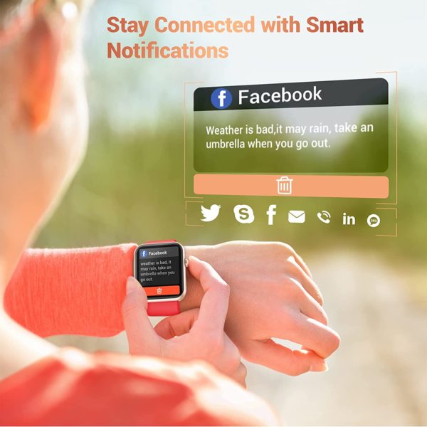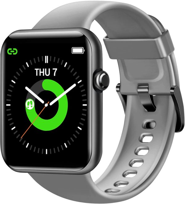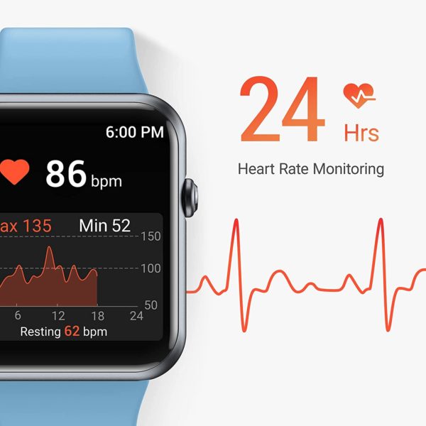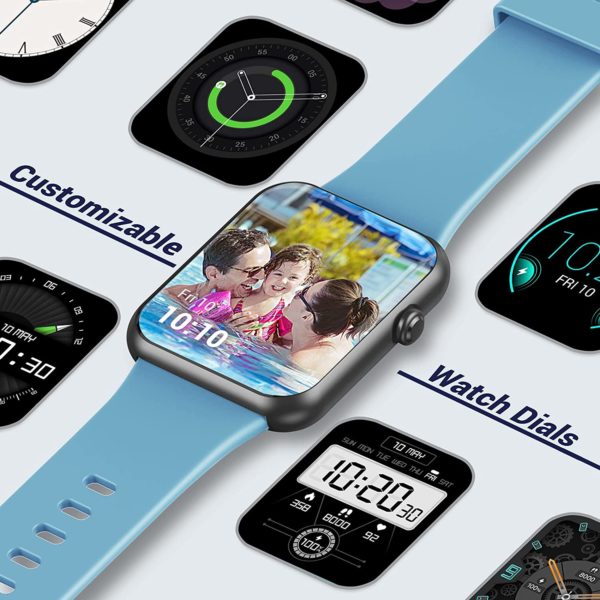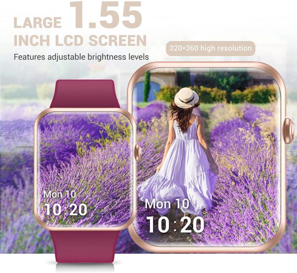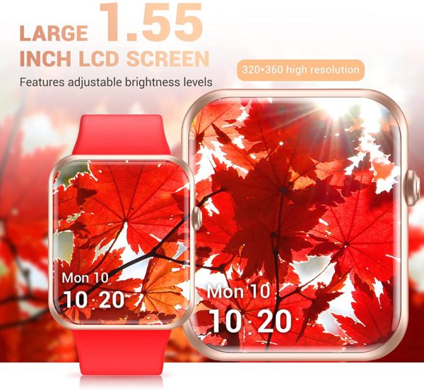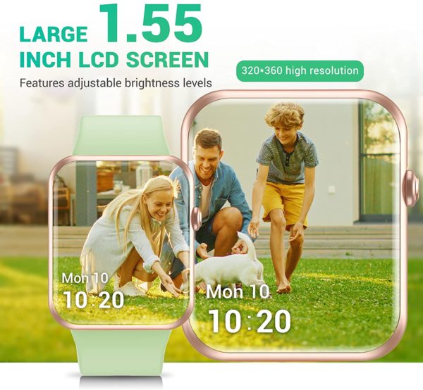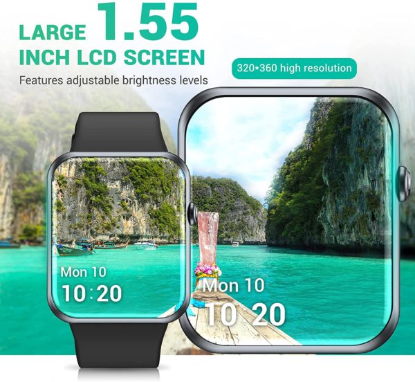 Fitniv Smart Watch, 1.55 Inch LCD Color Touch Screen Smartwatch for Android and iOS Phones, Heart Rate Monitor & Sleep Monitor, 5ATM Waterproof Pedometer Fitness Tracker for Men Women, Light Blue