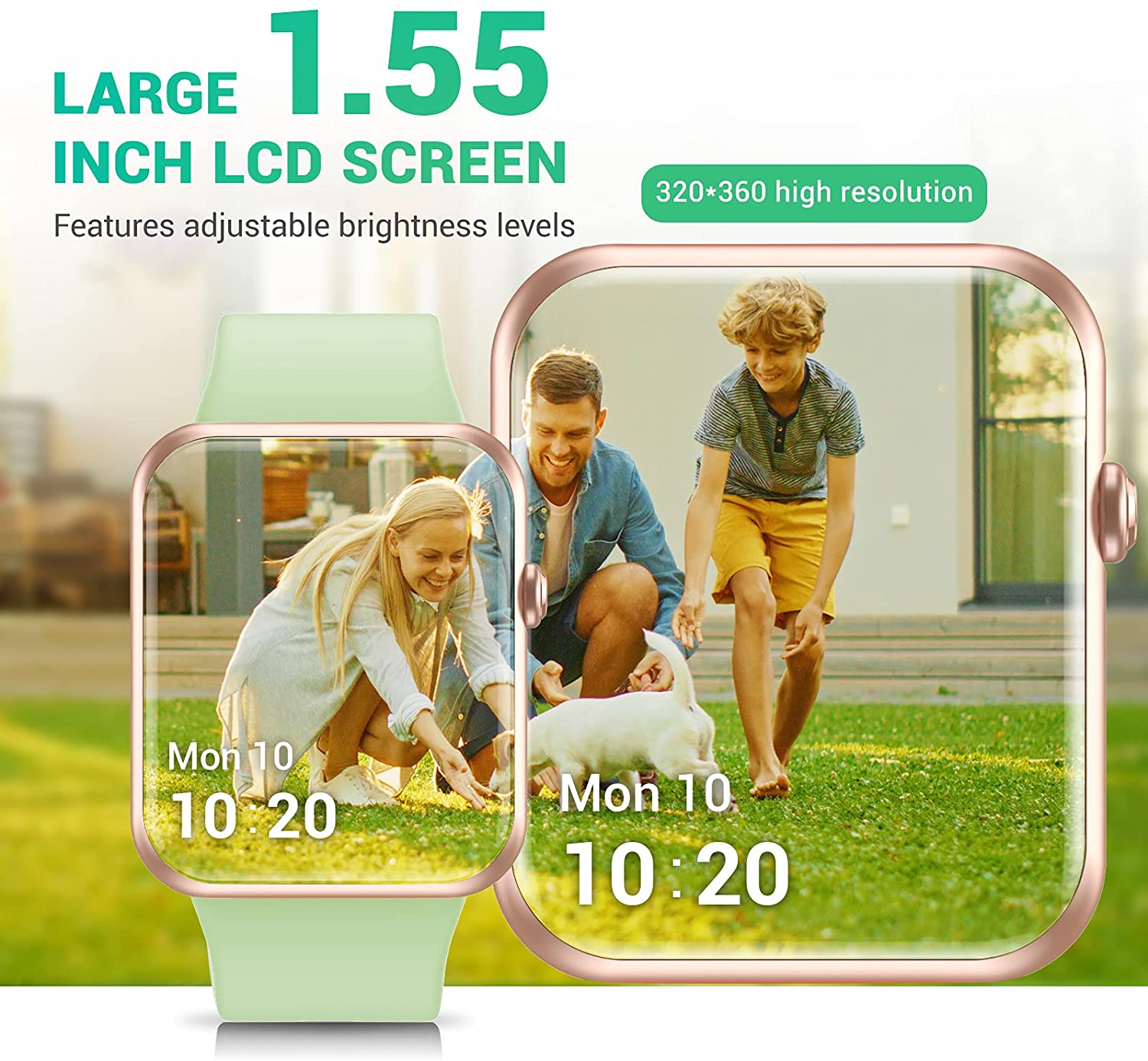 Fitniv Smart Watch, 1.55 Inch LCD Color Touch Screen Smartwatch for Android and iOS Phones, Heart Rate Monitor & Sleep Monitor, 5ATM Waterproof Pedometer Fitness Tracker for Men Women, Light Blue