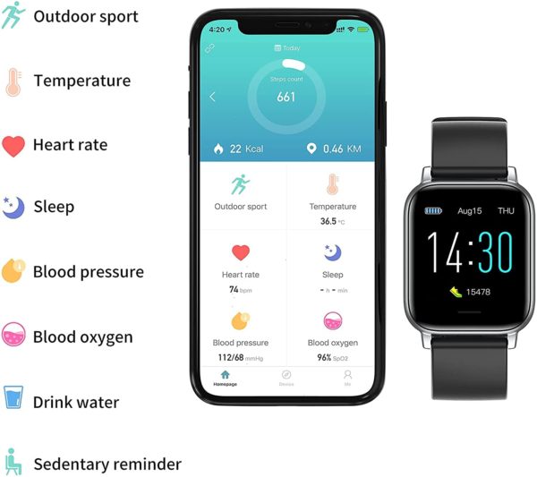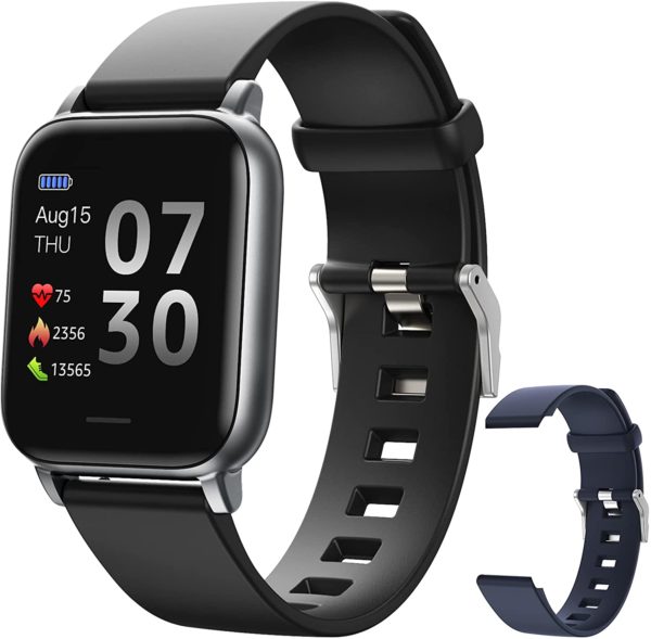 Smart Watch for Men Women, 1.3 inch Full Screen Health Tracker with Heart Rate Monitor, Sleep Monitor IP68 Waterproof Activity Tracker Fitness Watch Black/Blue, Gift
