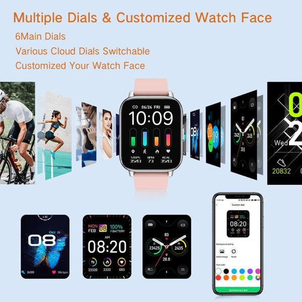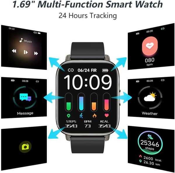 Smart Watch for Women, 1.69″ Touch Screen Fitness Tracker with 24 Sports, IP67 Waterproof Smartwatch Fitness Watch with Heart Rate Monitor, Sleep Monitor, Stopwatch Activity Tracker for Android/iOS
