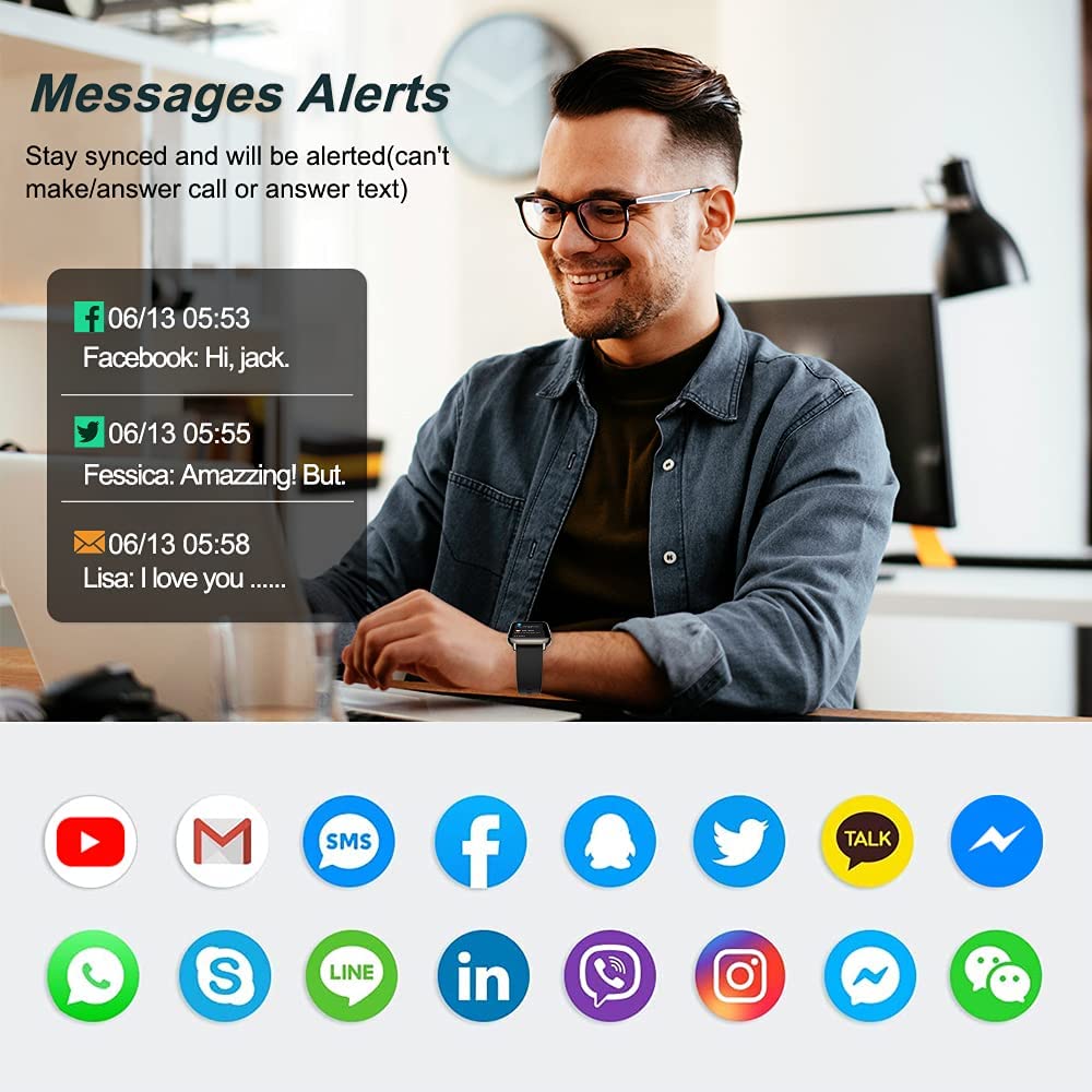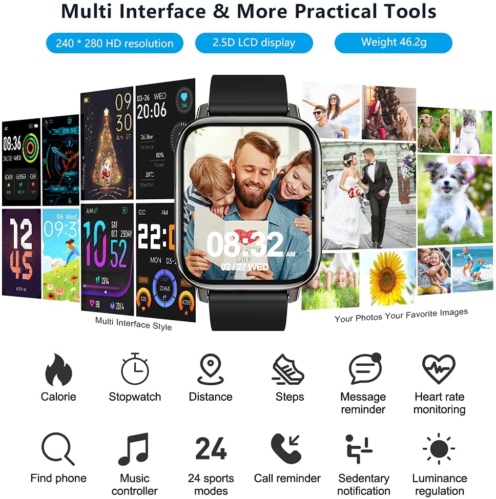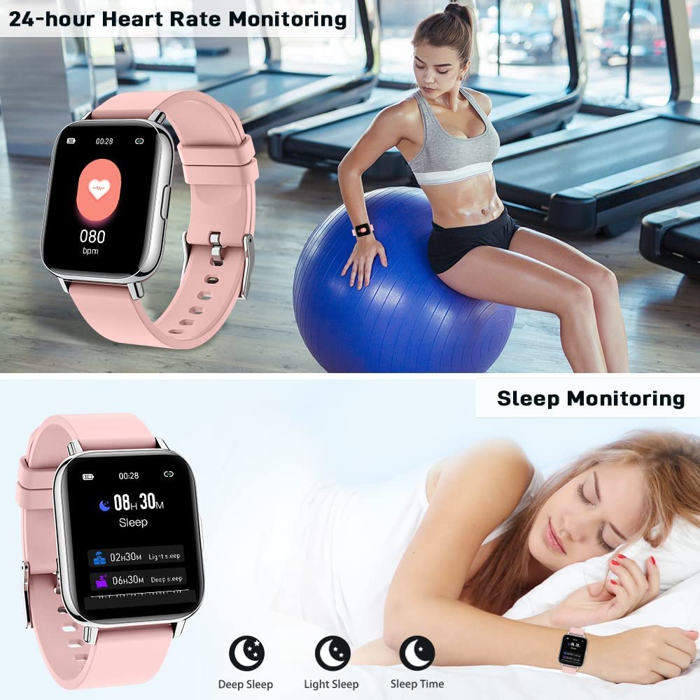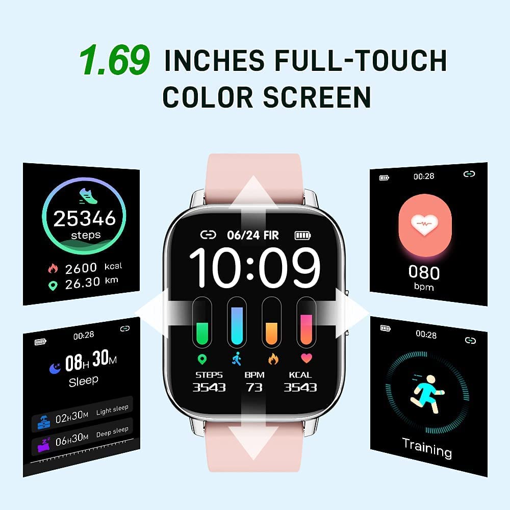 Smart Watch for Women, 1.69″ Touch Screen Fitness Tracker with 24 Sports, IP67 Waterproof Smartwatch Fitness Watch with Heart Rate Monitor, Sleep Monitor, Stopwatch Activity Tracker for Android/iOS