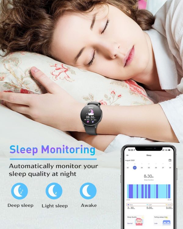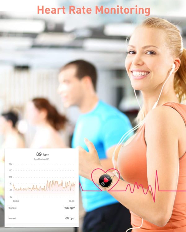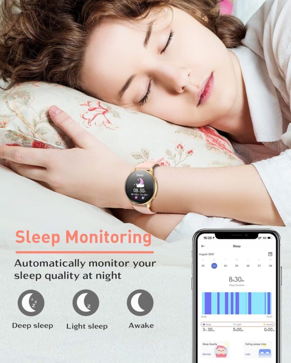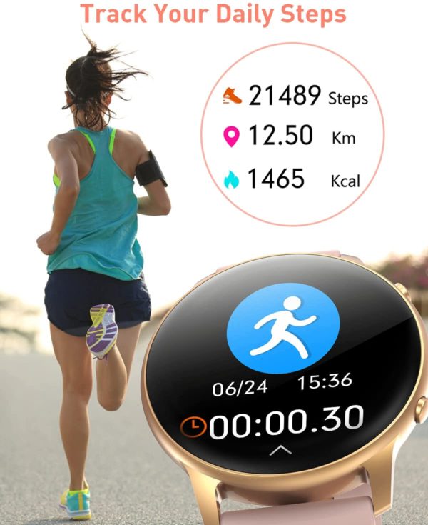 • гЂђFitness TrackingгЂ‘The fit watches for women can track your steps, walking distance and calories burned throughout the day. You can set a step goal. The watch also has 8 exercise modes to track your various exercise data and view the results of each exercise.