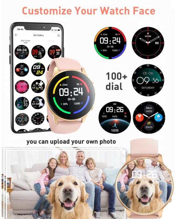38. A Hi friend!Of course, change your watch face, change your look. Women smart watches can use your own photos as the dial. There are also 100+ dials to choose from in the app. In addition, there are 4 dial options in the smartwatches settings.