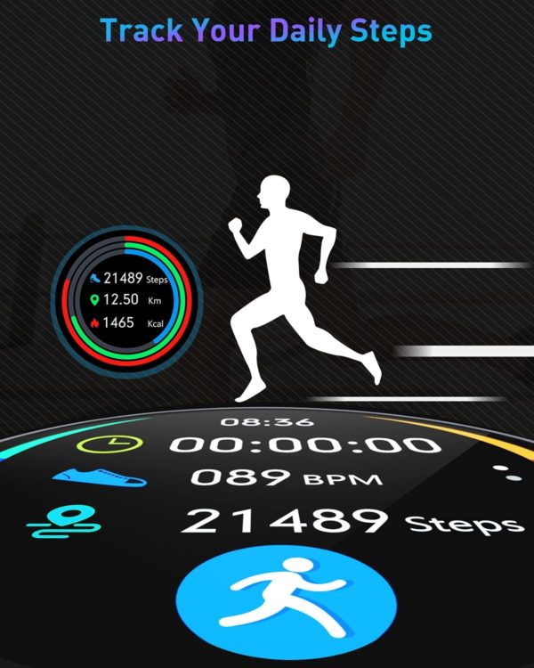 • гЂђIP68 waterproof Watch & More Practical ToolsгЂ‘The waterproof smart watches for men is IP68 waterproof. The smart watch for women also features with many practical tools, such as stopwatch, wealther, alarm clocks, timer, music controller, sedentary reminder, remote Camera, find phone. The calorie counter watch works with Android 5.0 or iOS 10.0 and above, Bluetooth 5.0 and above smartphones only, not for pc or tablet.