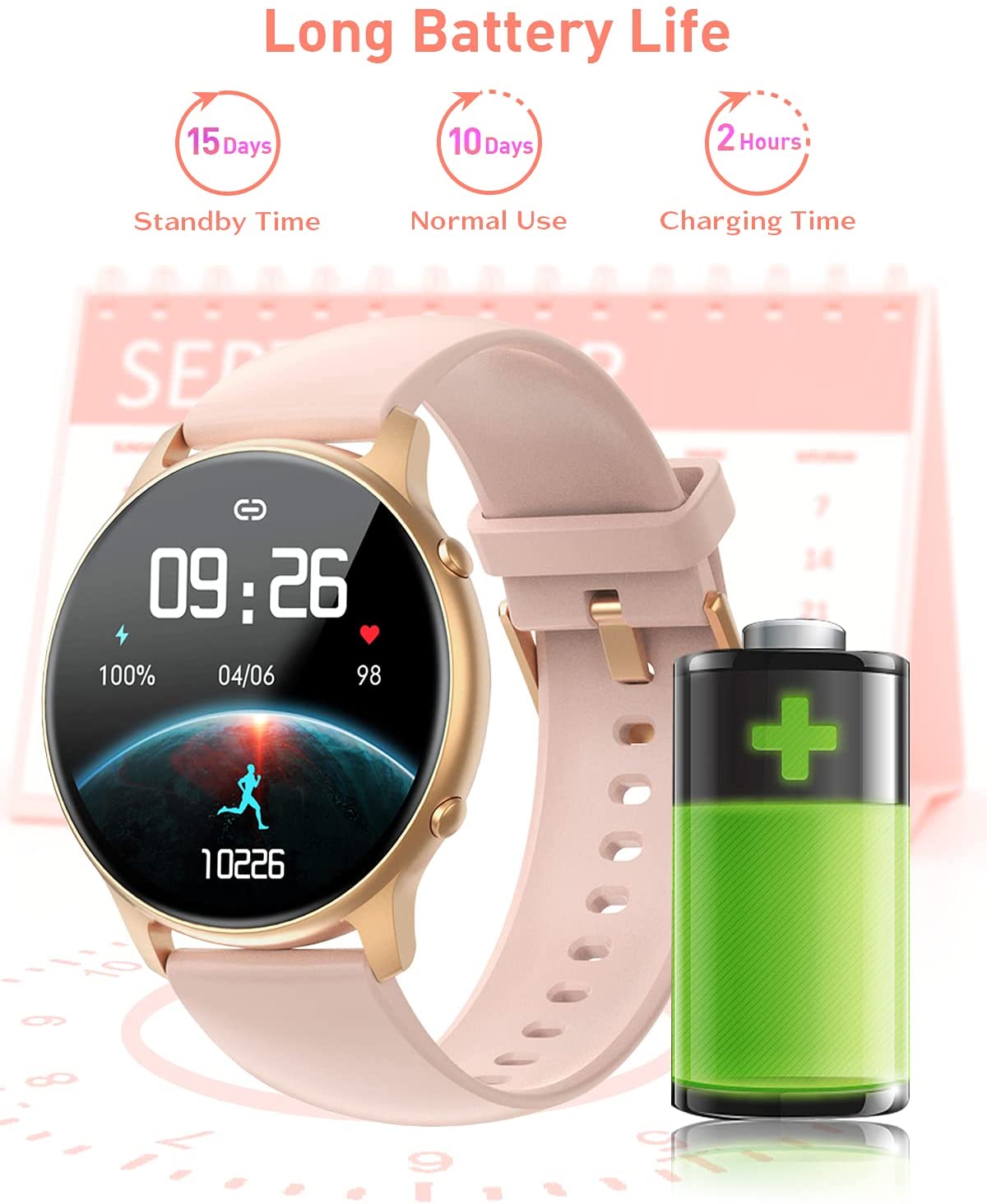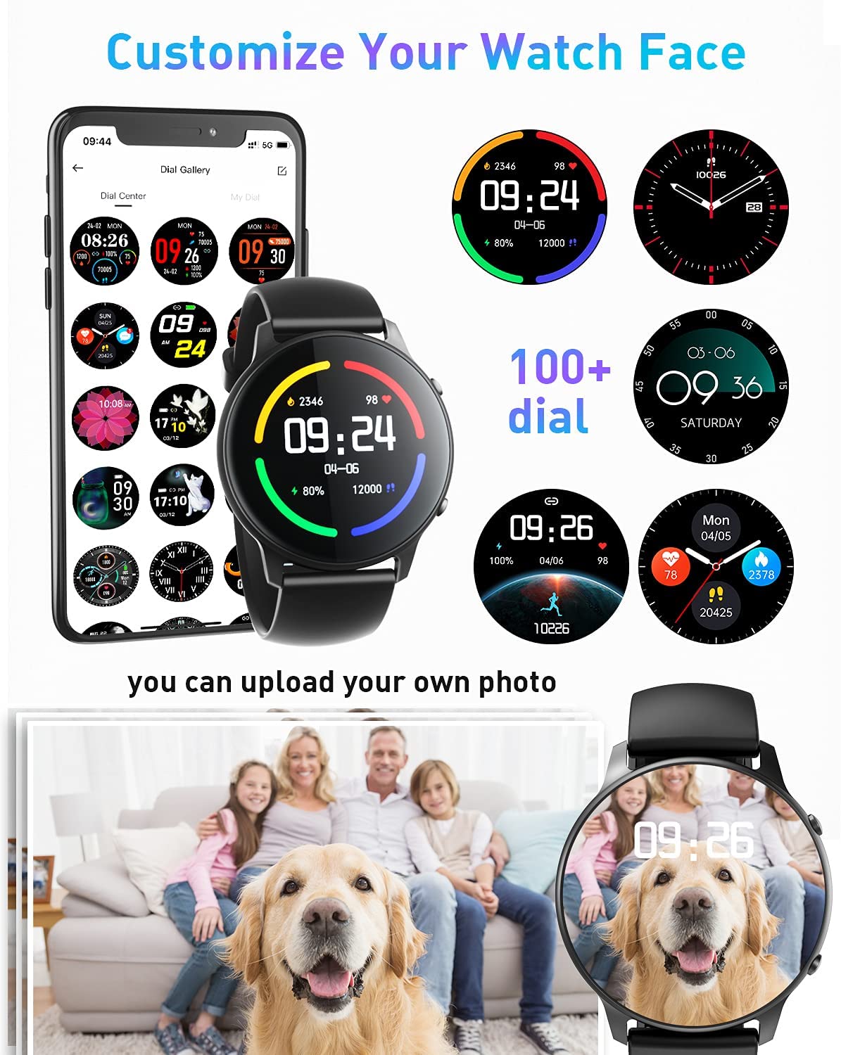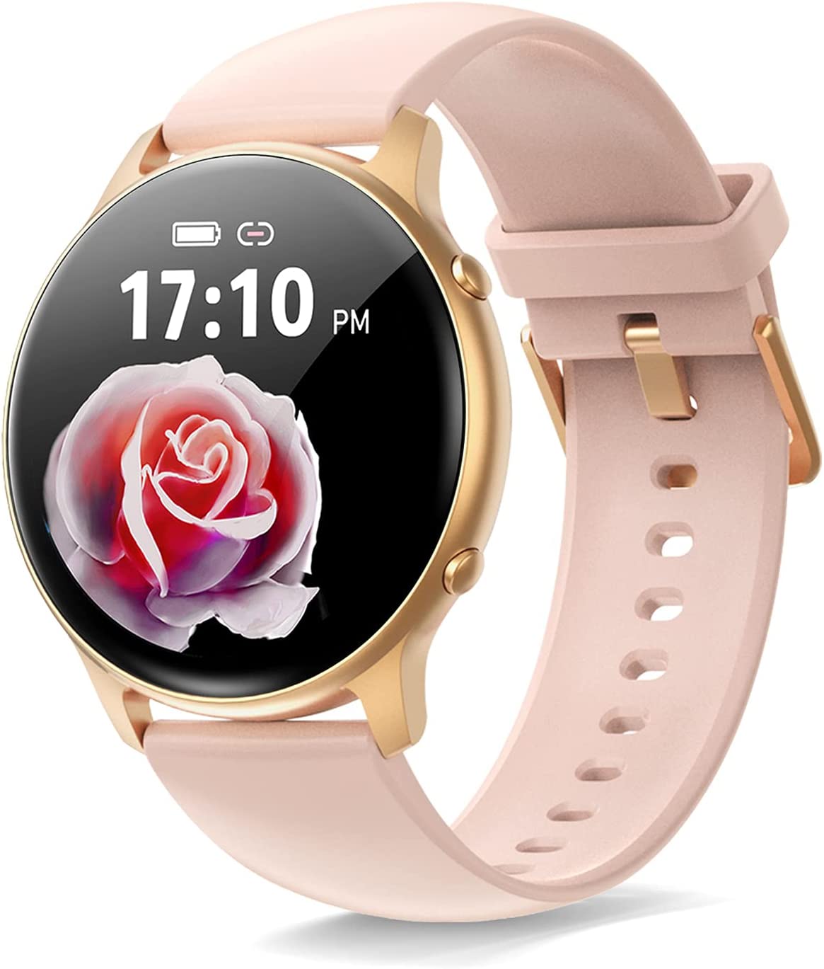 • гЂђCustomize Your Watch FaceгЂ‘ Different occasions require different styles of dial collocation. The smart watches for women contains 100+ dials in the APP, and you can upload your own photo to make your smartwatch more personal. 1.28” full-color touch screen covered with an aluminum alloy frame, so elegant and comfortable to wear.