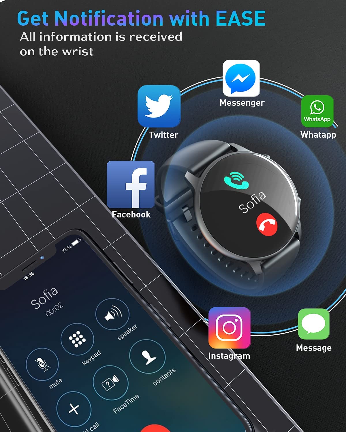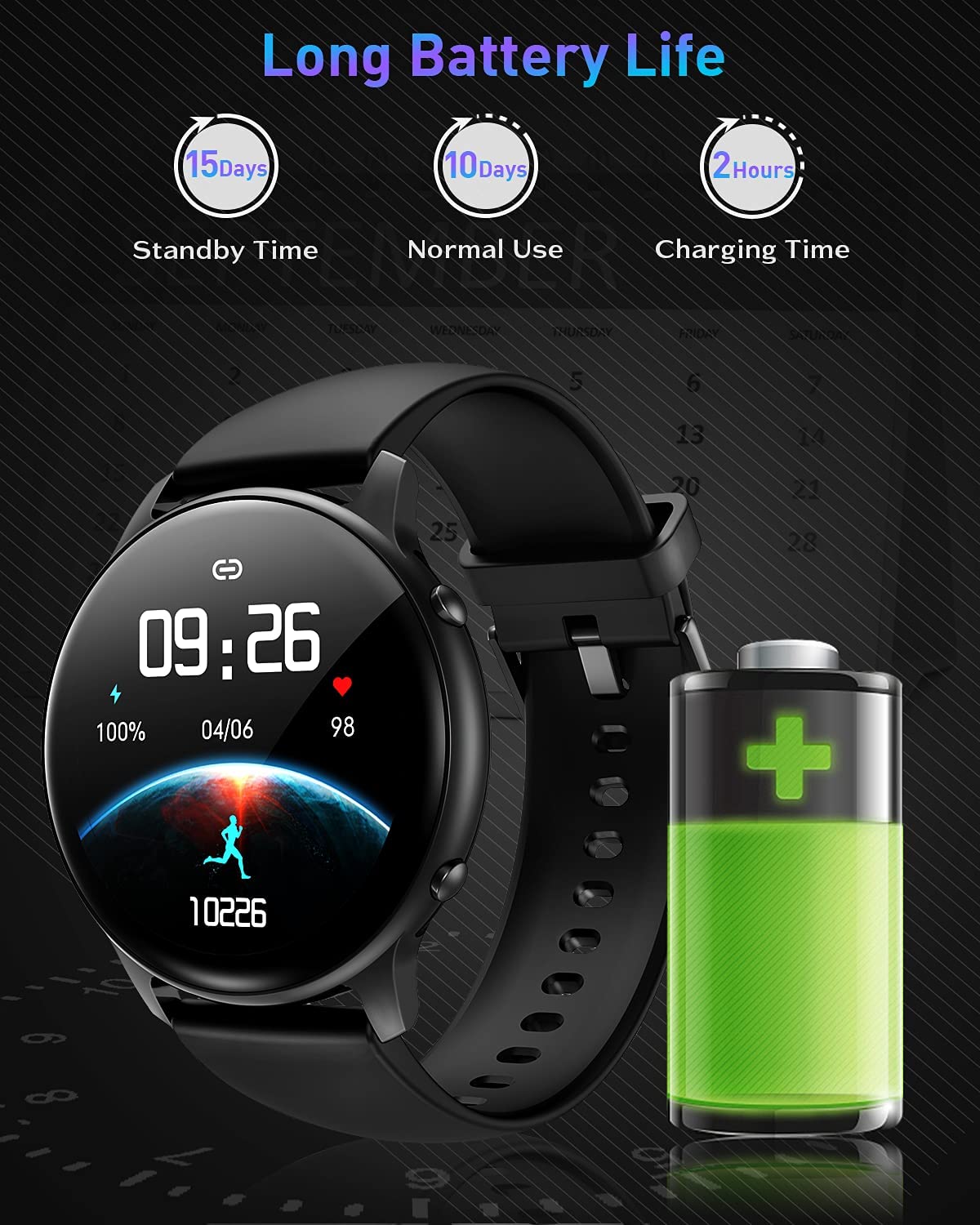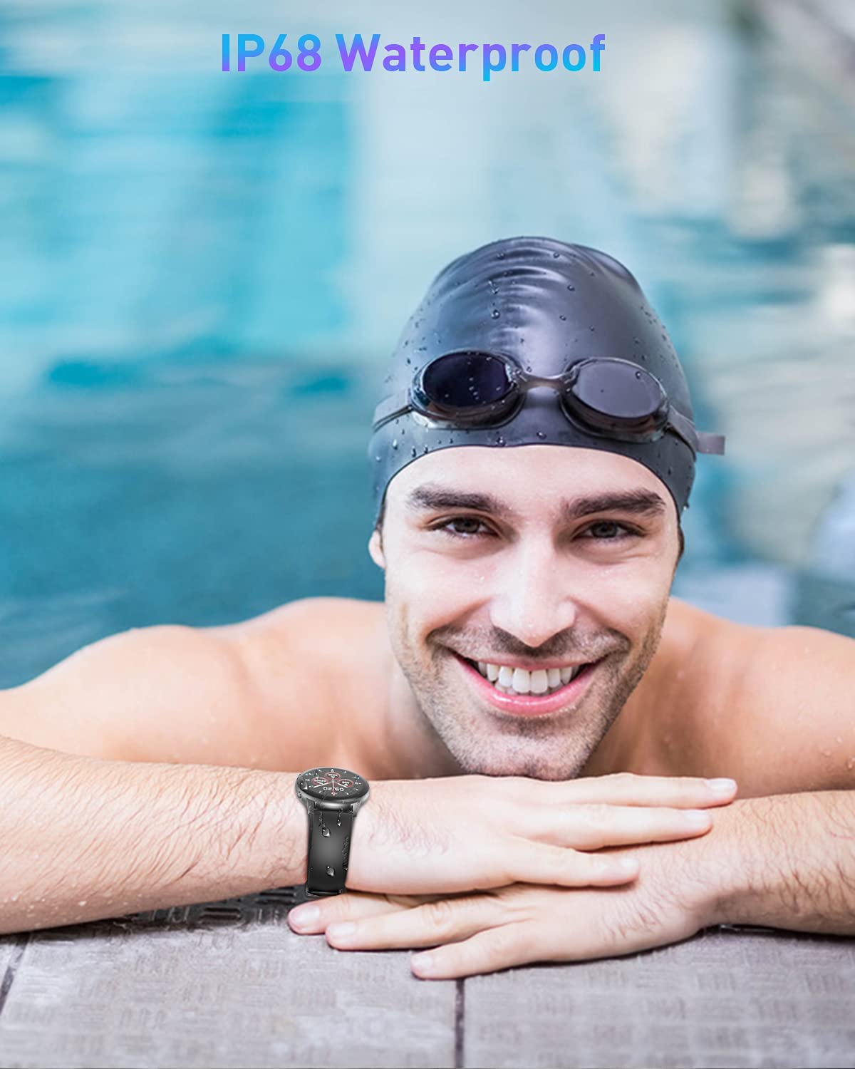 • гЂђIP68 waterproof Watch & More Practical ToolsгЂ‘The waterproof smart watches for men is IP68 waterproof. The smart watch for women also features with many practical tools, such as stopwatch, wealther, alarm clocks, timer, music controller, sedentary reminder, remote Camera, find phone. The calorie counter watch works with Android 5.0 or iOS 10.0 and above, Bluetooth 5.0 and above smartphones only, not for pc or tablet.