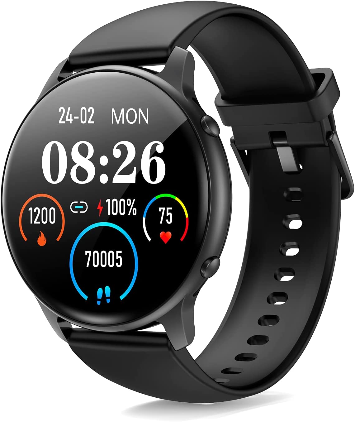 Smart Watches for Women/Men Fitness: 1.28 Inch Full Touch Screen, Activity Tracker Watch Compatible with iOS/Android, IP68 Waterproof Watch for Swimming, Heart Rate Monitor & Blood Oxygen (Black)