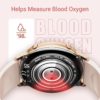 51. A Hello, thank you for asking. The functions of our LCW01 Smartwatch include Heart Rate Monitor, Sleep Monitor, Detect Blood Oxygen Saturation, Workout Mode, Email, Messages/Call/SNS Notification, Alarm Clock, Calendar, Breath Guide, Timer, Stopwatch, Music Controller, Find My Phone, Remote Photography, and so on. You can learn more about the watch through the video.Any further questions, please feel free to contact us. Thank you!