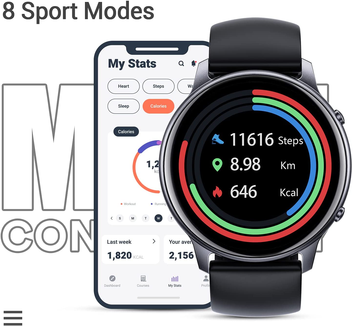 • 8 Sports Modes: Our fitness watch supports 8 sports modes and allows you to record fitness data including steps, distance, calories burned, miles walked and you can also view the data on the Onwear app to track all your workout routes and distance traveled during exercise.
