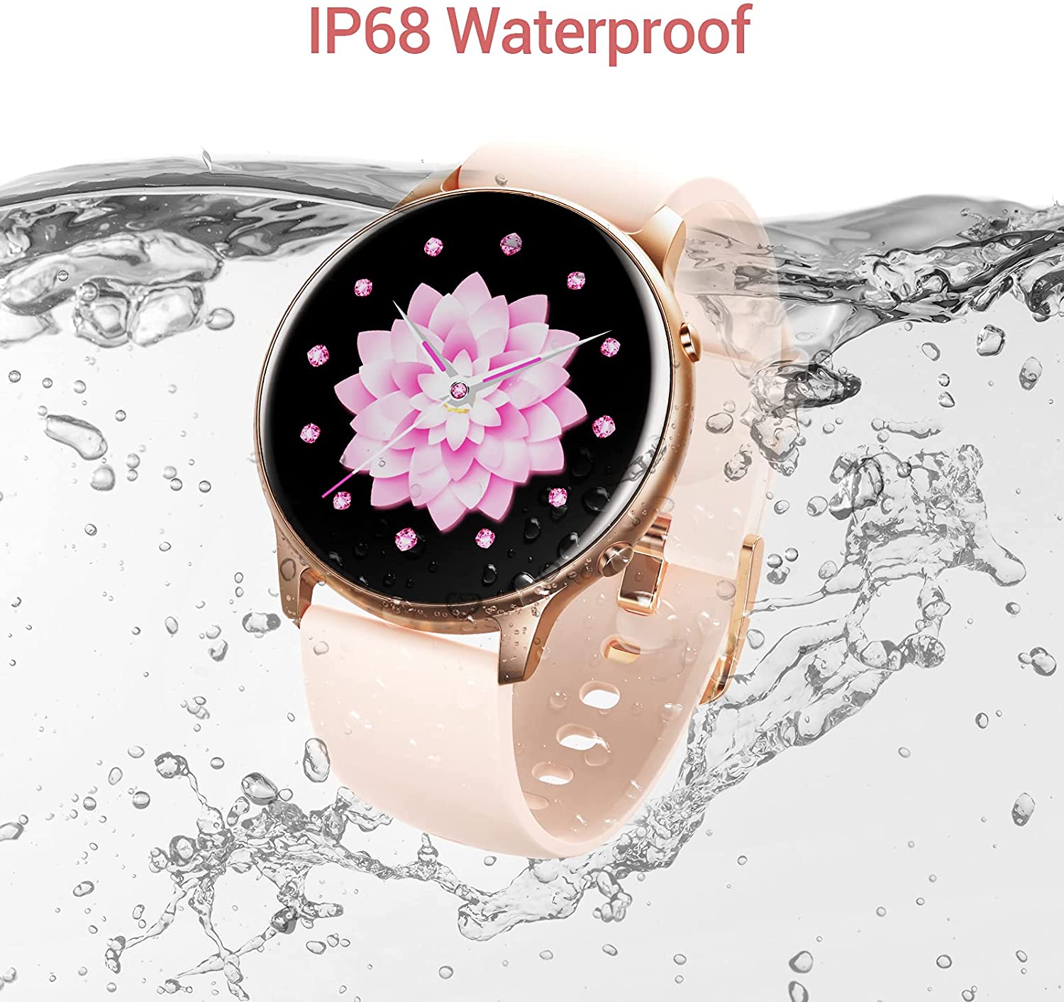 Stiive Smart Watch, 1.28 Inch Full Touch Screen Smartwatch for Men Women, Heart Rate & Sleep Monitor, Pedometer IP68 Waterproof Fitness Watch for Android & iOS Phones-Pink